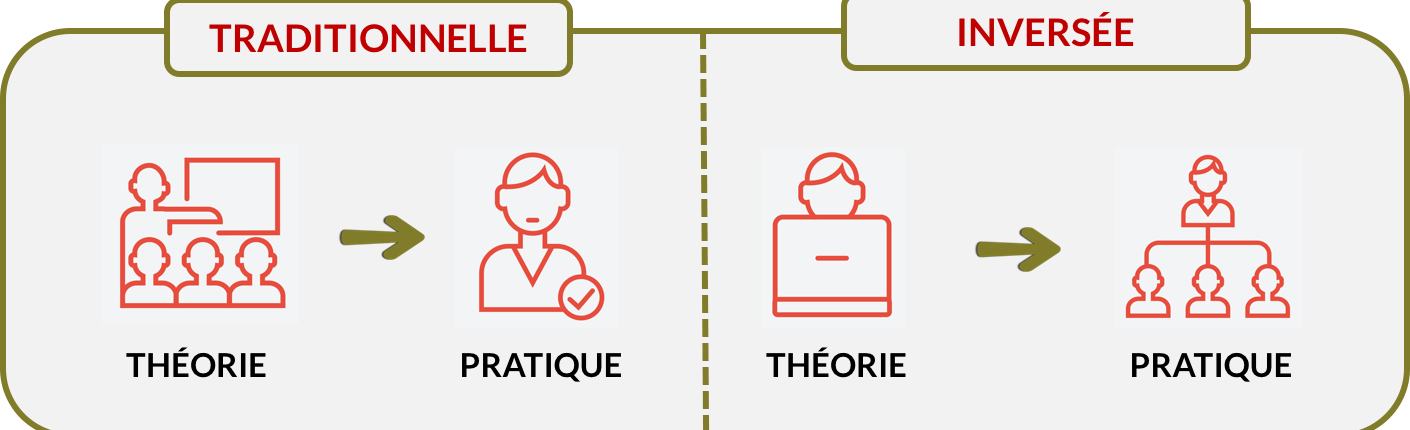 Concrètement, la pédagogie inversée consiste à apprendre la théorie en mode asynchrone (individuellement de manière autonome, sans la présence du formateur) pour la mettre en pratique de manière synchrone (avec le soutien du formateur).